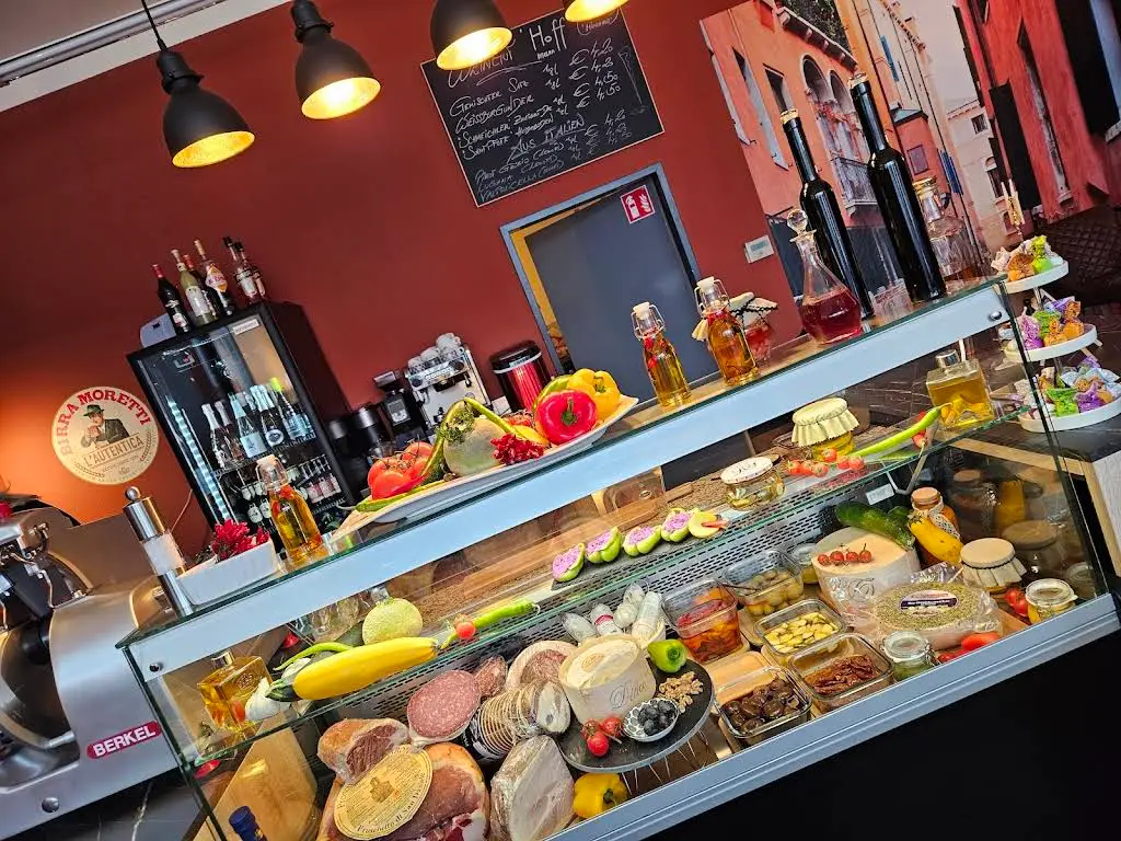 In der Prosciutteria San Daniele dreht sich alles um echte italienische Feinkost. Im Mittelpunkt steht hochwertiger Prosciutto, begleitet von ausgewählten Spezialitäten und erlesenen Weinen.